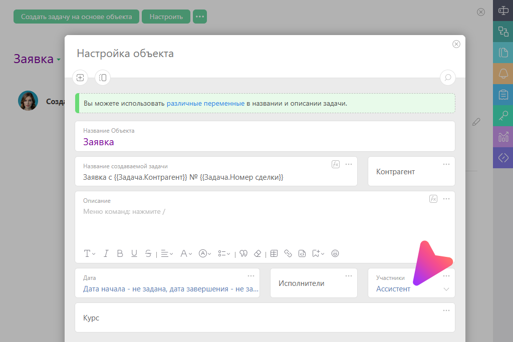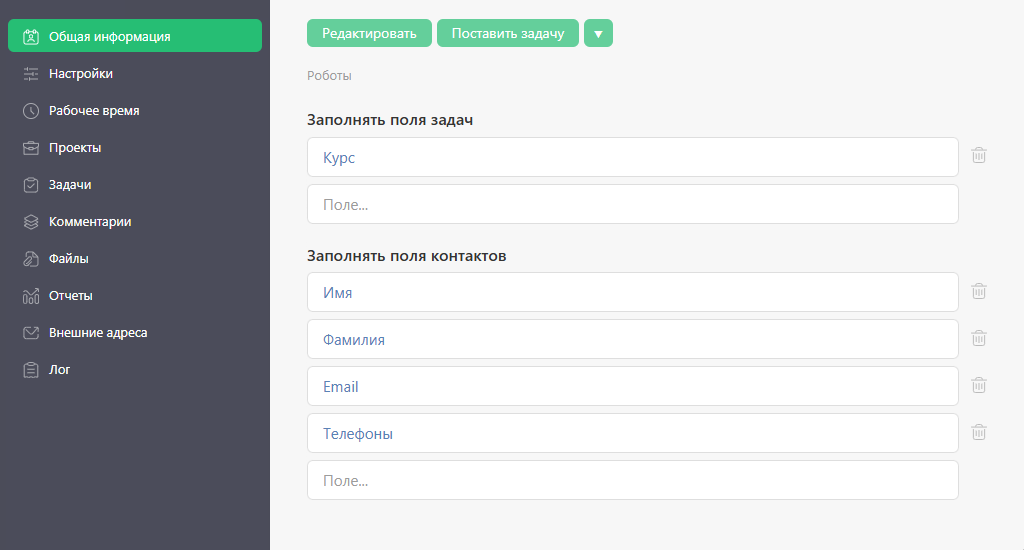 Обратите внимание: менеджеры могут подключать Интервьюера не только автоматически, но и вручную — как в середине, так и в конце переписки. Для этого достаточно добавить агента в задачу в нужный момент, и он автоматически начнёт проводить опрос.