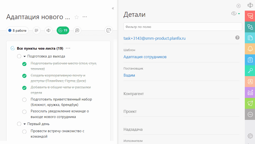 - Если в Объекте есть обязательные к заполнению поля, то при быстром создании задачи через планировщик, список или чек-лист откроется полная форма задачи.