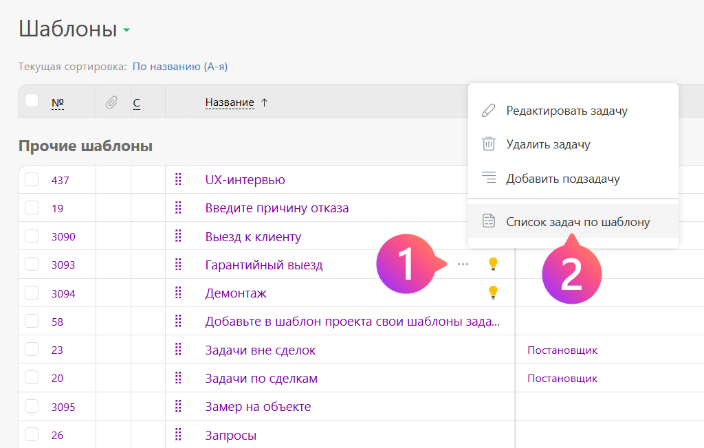 - Теперь можно быстро просмотреть список задач, созданных по шаблону. Опция поможет отсеять неиспользуемые шаблоны.