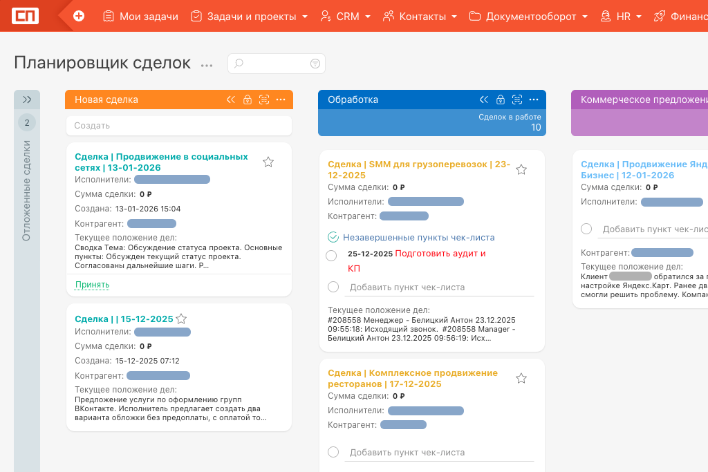 После того как я разобрался с CRM-модулем и соцсетями, начал переносить в систему и другие процессы: