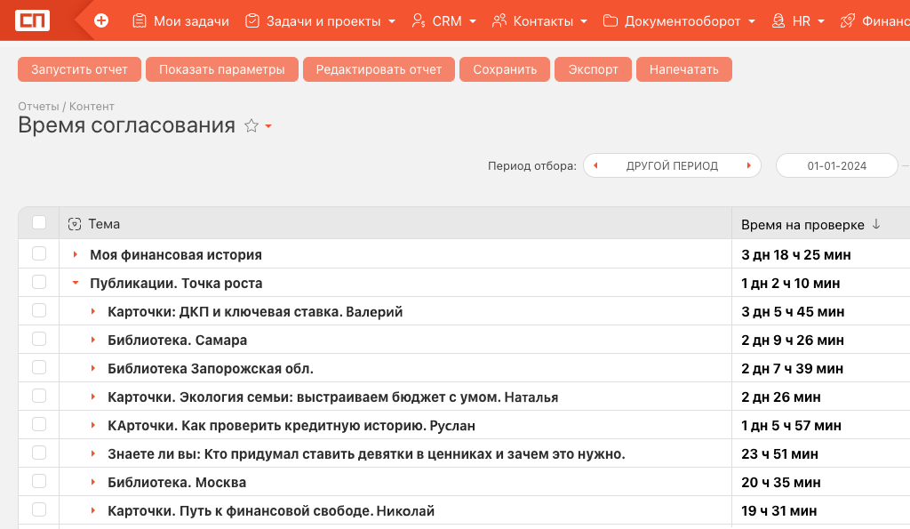 В итоге мы просто выгрузили отчёт и показали: вот таблица, вот статусы, вот сколько дней и часов задача находилась на каждом этапе.