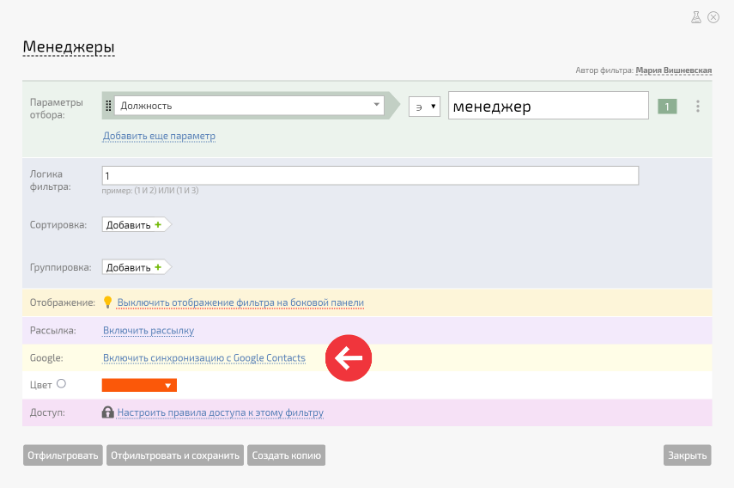 списков, в которые контакты будут попадать в зависимости от нужных вам условий. Например, список