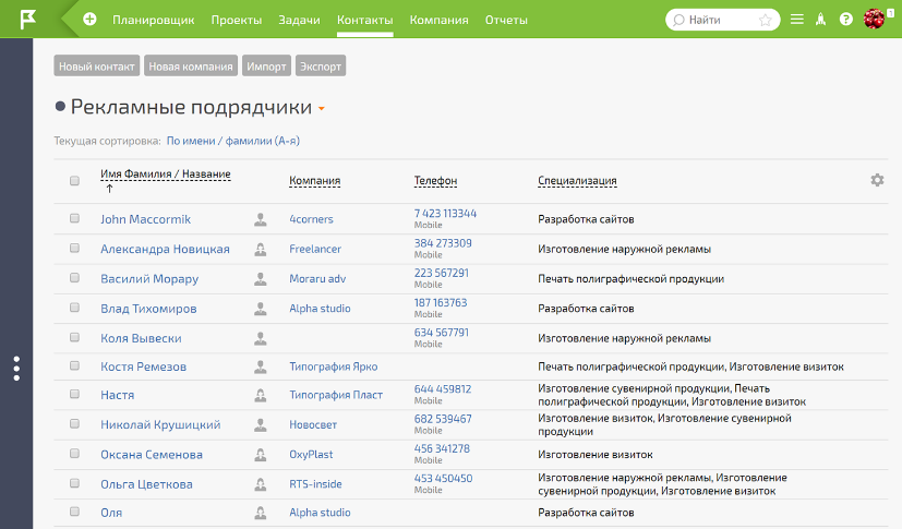 клиентов, с которыми запланированы встречи сегодня. Или список партнеров, участвовавших в последней