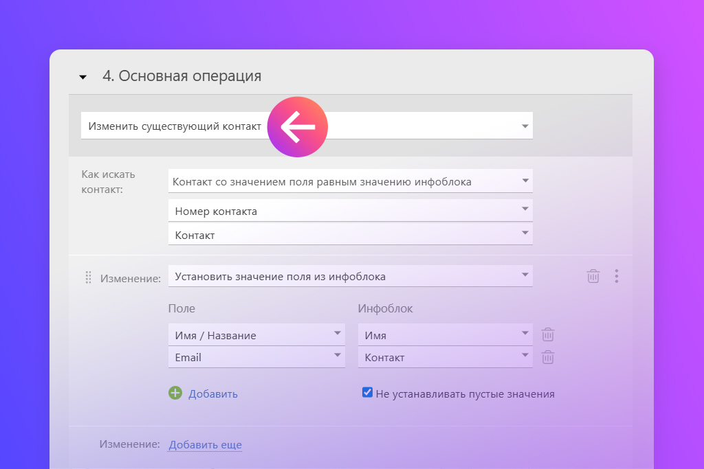 Добавили в вебхуках возможность изменять уже существующие контакты.